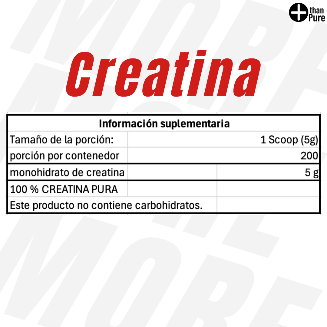 Creatina 1K de More Than Pure es un suplemento de alta pureza formulado con creatina monohidratada micronizada, ideal para quienes buscan más fuerza, mayor volumen muscular y una mejor recuperación tras entrenamientos intensos.